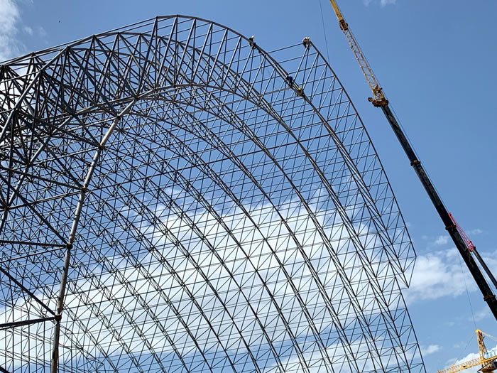 (2)网架加工前应对现场尺寸进行复测,确认无误后方可进行加工、安装;网架制作、运输、安装应遵守《空间网格结构技术规程》JGJ7-2010、《钢网架汉川螺栓球节点》JG/T 10-2009、《钢网架汉川螺栓球节点用高强度螺栓》 GB/T 16939-2016、《汉川钢结构汉川工程汉川施工规范》 GB50755-2012、《汉川钢结构汉川工程汉川施工质量验收标准》 GB50205-2020。